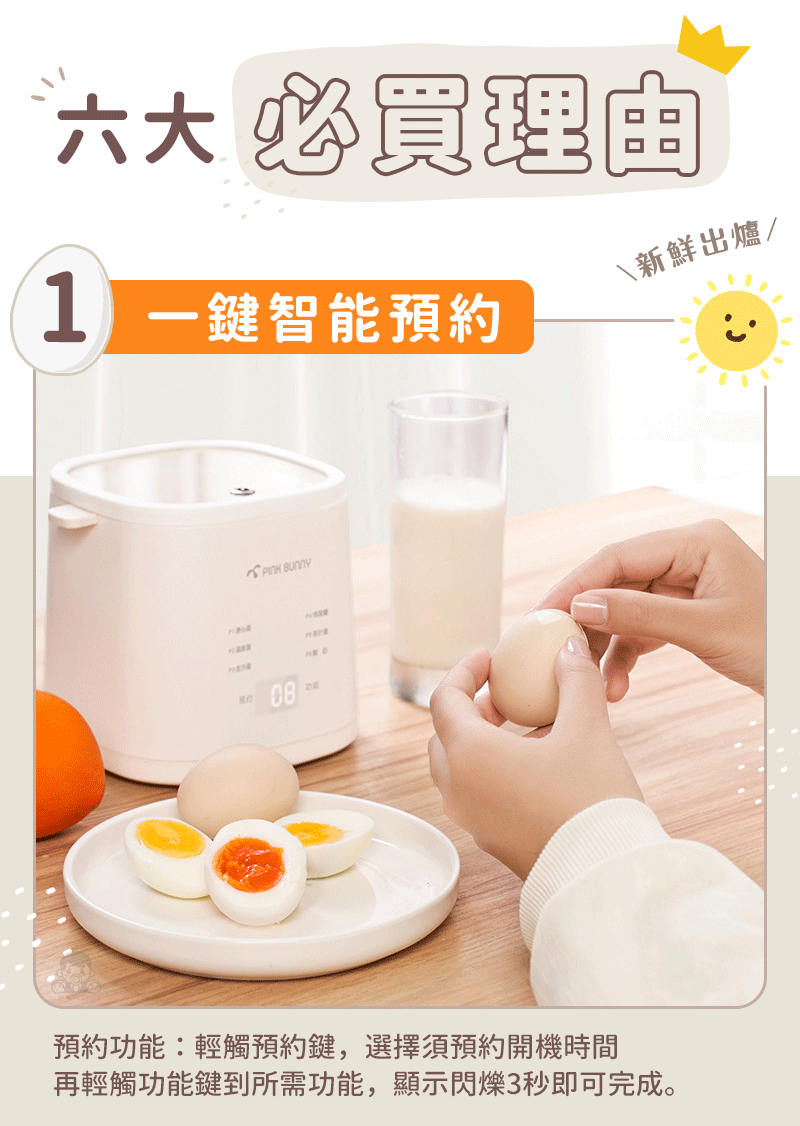 半小時前Pink Bunny智能煮蛋機智能控溫烹煮,營養美味輕鬆上桌 - Pink Bunny智能煮蛋機2入組 NT$1990