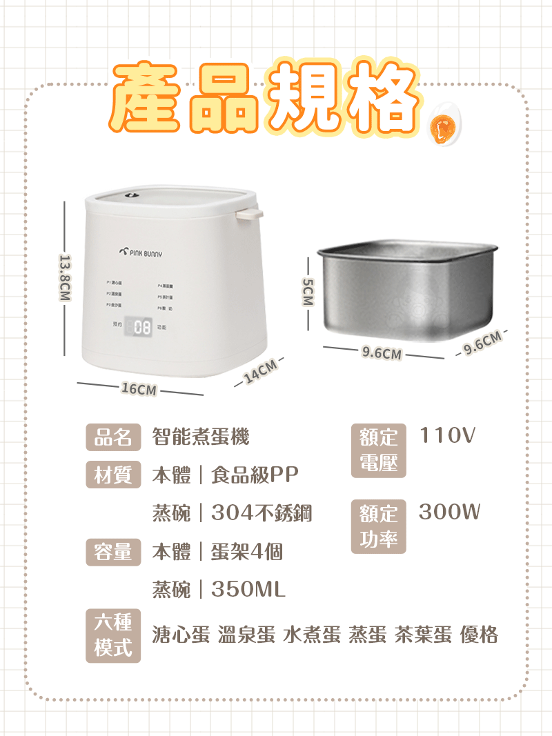 20分鐘前Pink Bunny智能煮蛋機智能控溫烹煮,營養美味輕鬆上桌 - Pink Bunny智能煮蛋機1入組 NT$1090