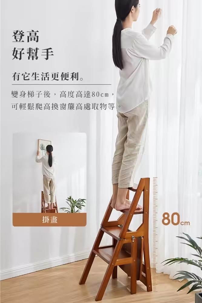 2分鐘前【現貨】二合一折疊梯子椅,木料製作,打磨精緻,可變為簡易小梯子,可幫助拿取高處物品 - 【四層|純實木|椅子秒變梯子】NT$2880